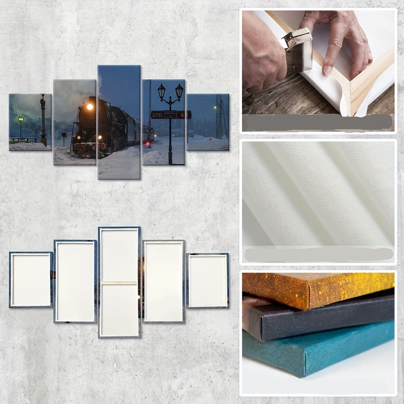 Level up your room aesthetic with this 5-piece canvas wall art set. Seriously, these aren't your grandma's train pictures. We're talking vintage transportation vibes meets modern art. Each panel features a snowy train scene that's gonna give your space that chill, cozy feel. The wooden frames add a touch of sophistication without being stuffy. Think insta-worthy backdrops and elevated dorm room wall art decor. These posters aren't just some basic prints; they're a whole mood.