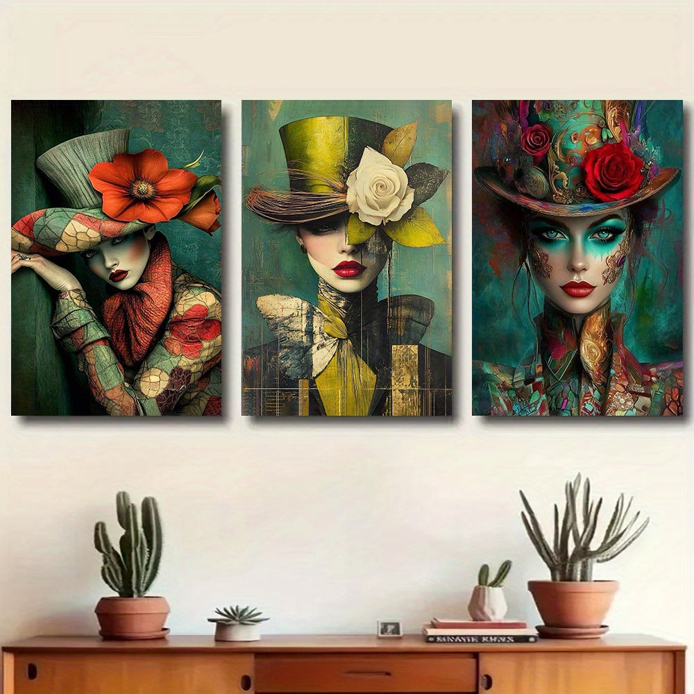 Okay, besties, check out this wall art decor set – it's straight-up chef's kiss. If your space is looking kinda sus and needs a major glow-up, these Art Deco-inspired vintage fashion hat canvas art prints are the vibe. We're talking colorful female portraits with floral accents that scream "I'm sophisticated but also a whole mood." Perfect for leveling up your living room, bedroom, classroom, or even that boujee restaurant you've been eyeing. Seriously, this art is the main character energy you need.