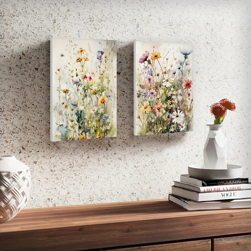 Yo, check out these fire 2-piece framed floral and botanical art canvas paintings! Seriously, if your room is looking kinda sus, these are the glow-up you NEED. We're talking major chef's kiss vibes. It's all about that effortlessly chic farmhouse aesthetic, but with a modern, wall art deco twist. The watercolor wildflower design is straight-up gorgeous, bringing all the chill, nature-inspired energy into your space. Imagine kicking back in your bedroom, surrounded by this chill artwork. These canvas painting will bring the main character energy.