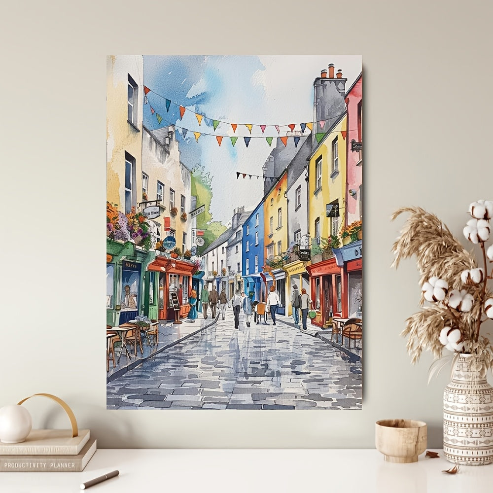 Okay, fam, check out this canvas wall art decor – it's not your grandma's floral print, that's for sure. We're talking major vibes here. This ain't just a pic; it's a whole mood, capturing a snapshot of Galway Quay Street that's straight fire 🔥. Imagine a burst of color, a slice of Irish charm, and a whole lot of aesthetic packed into one frame. It's like bringing that "main character" energy into your bedroom, dorm, or living room. Seriously, this vibrant watercolor street scenes canvas print pops with a unique style and aesthetic.