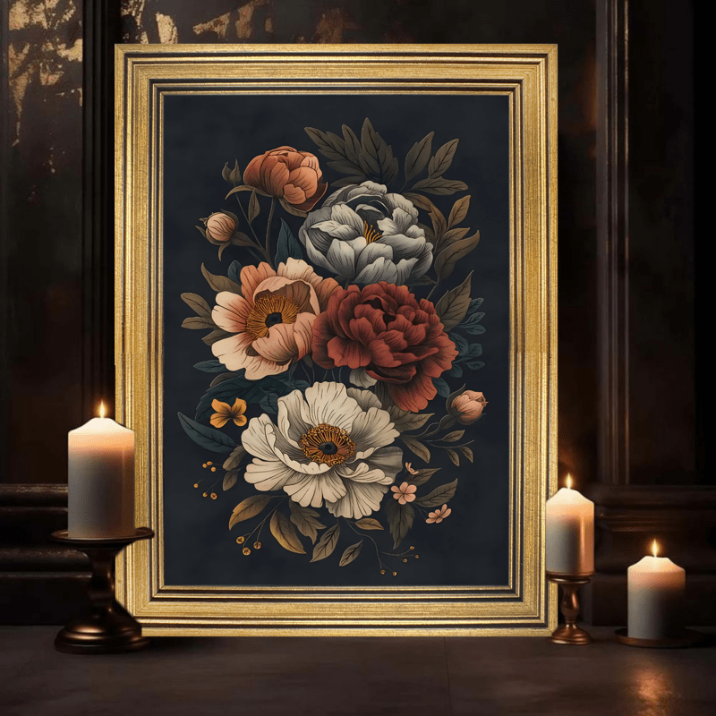 This floral and botanical canvas art is straight fire! Seriously, if your room's aesthetic is looking kinda basic, this piece will absolutely elevate it to the next level. Imagine walking into your living room and BAM—instant vintage vibes with a touch of modern chic. The dark background creates a vibe that makes the vibrant botanical print pop. Like, it's not just some boring wall decoration; it's a whole mood. It’s giving rustic farmhouse meets boujee art gallery, and honestly, who doesn't want that? This is an art that fits into any decor.