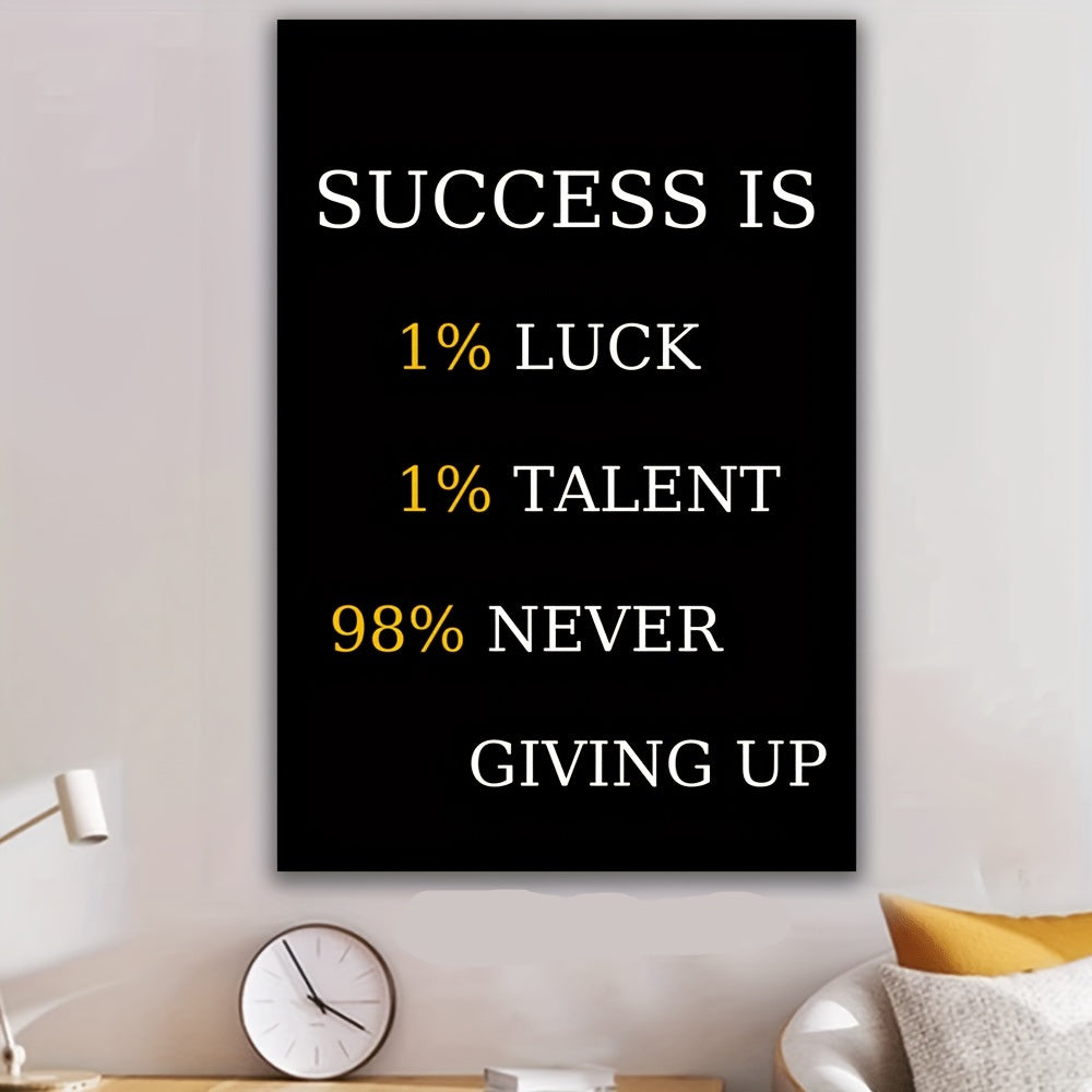 Okay, bestie, listen up! Need to level up your aesthetic and manifest some serious wins? This framed motivational wall art canvas is straight-up fire. Forget those basic, boring posters – this canvas print is giving main character energy. Featuring the quote "Success is 1% Luck, 1% Talent, 98% Never Giving Up," it’s the perfect daily reminder that you've got this. We’re talking ultimate inspo for your bedroom, dorm room, or even your workspace. If you are the type to look for wall art or canvas posters, then this might be your next purchase. Seriously, this artwork is a whole vibe.